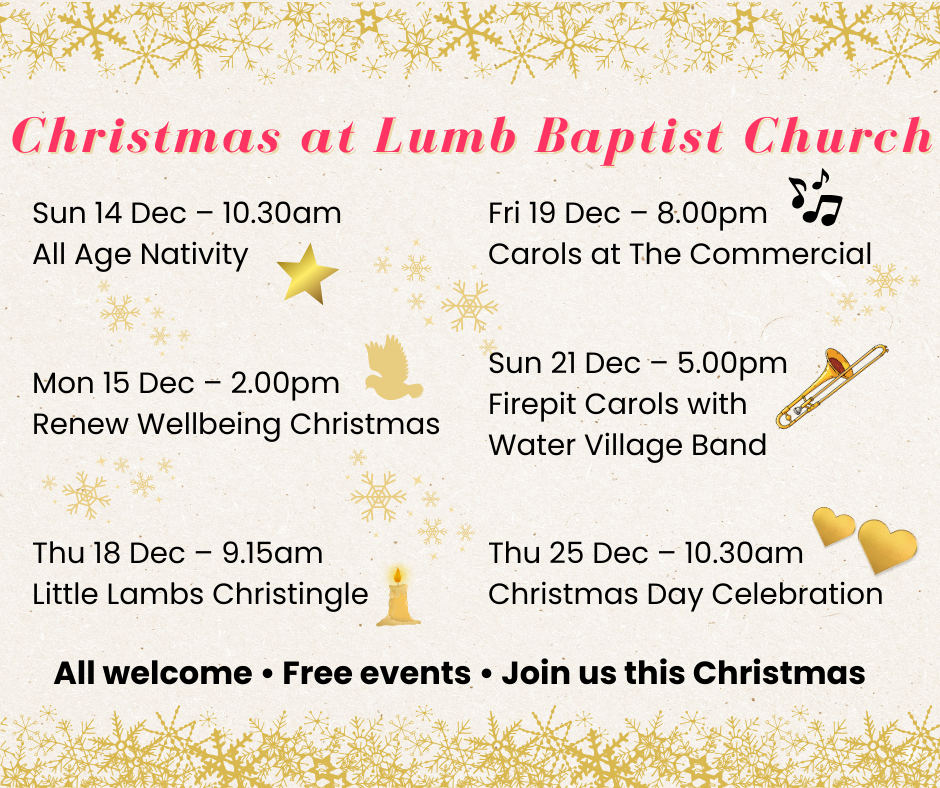 A short, joyful and meaningful celebration of the birth of Jesus. A warm welcome to all — bring friends and family.